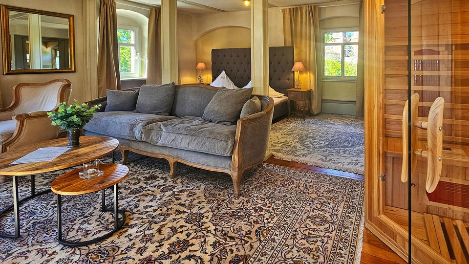 - 2020: Auch unsere 2009 ausgebauten Doppelzimmer werden u.a. mit Infrarotsaunen und Whirlpoolwannen aufgehübscht. Ebenso wird die 2014 modernisierte Suite zu einem Wellness Apartment umgebaut. Der Veranstaltungsraum "Salon Meißen" wird in eine beeindruckende Wellness Suite umgewandelt und auch die Winzersuite entsteht. Außerdem wird unser Wellnessbereich um den Saunagarten mit einer Fasssauna erweitert. Der neue Außenbereich bietet Platz für Sonnenliegen und eine beheizte Außendusche, die auch im Winter genutzt werden kann.